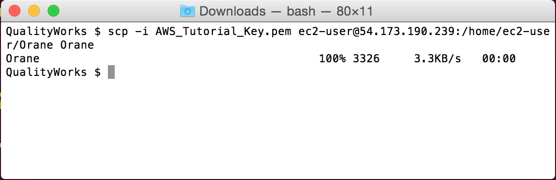$ scp -i <your_key.pem> ec2-user@<yourElasticIP>:/home/ec2-user/<username> <username> to copy the key “<username>” your AWS Server.