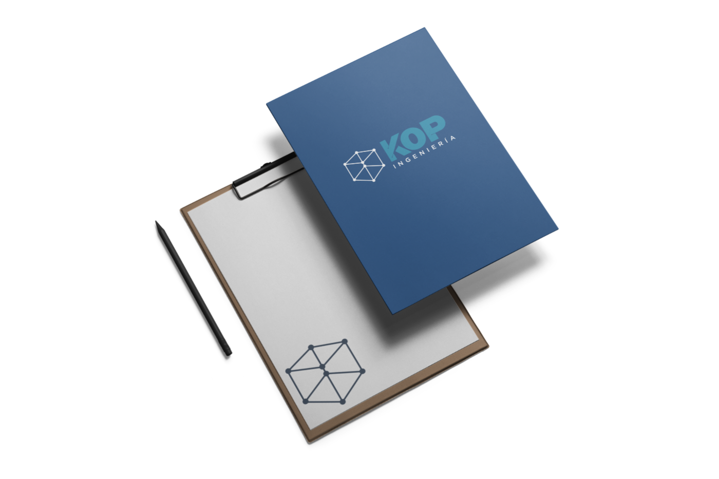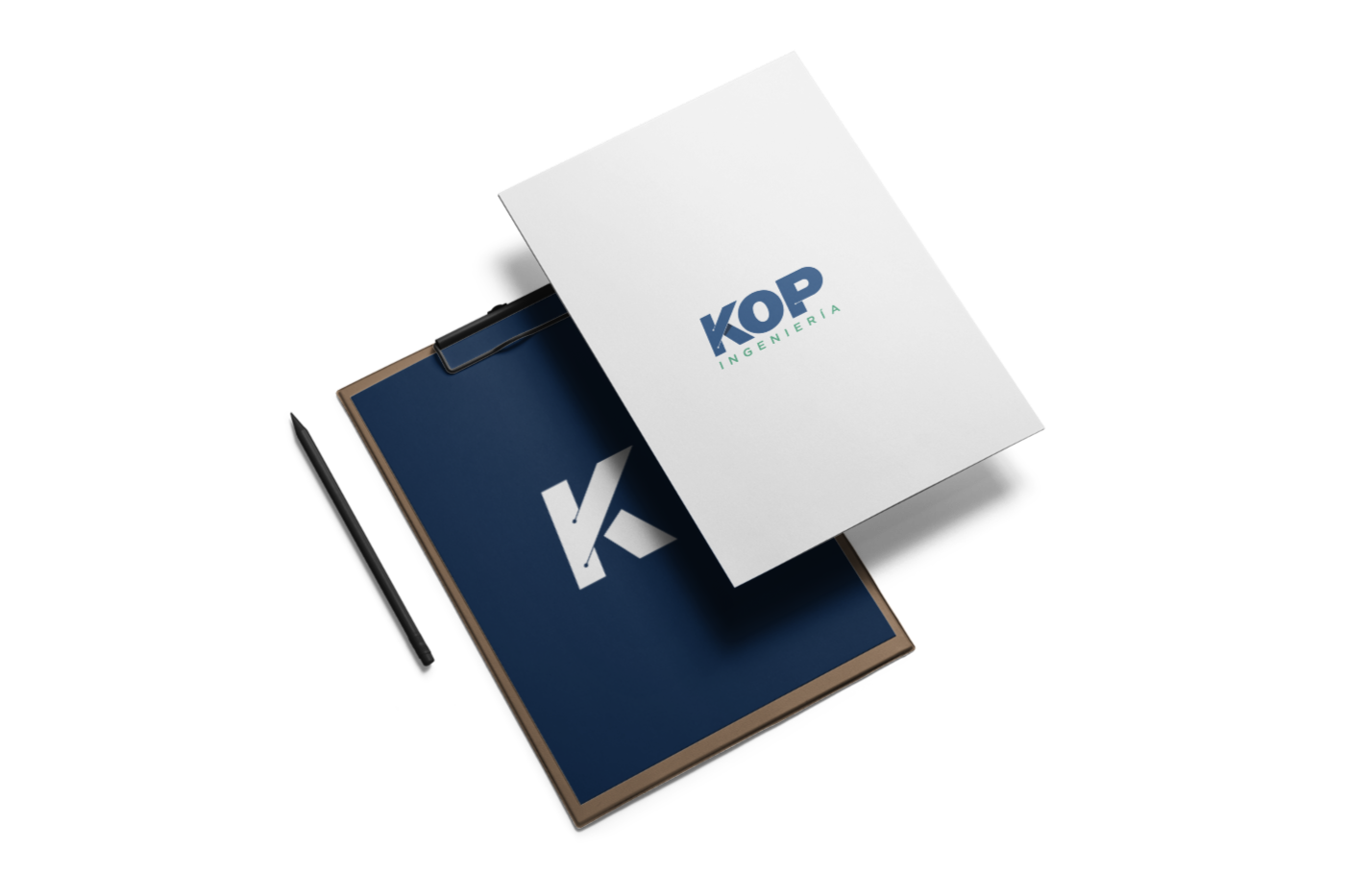 La posición inclinada representa la movilidad y el dinamismo de la empresa; las letras "K" y "P" pareciera que se van armando con los nodos que se alcanzan a distinguir.