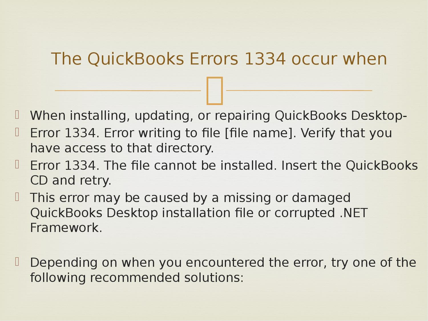 Are you facing QuickBooks Error 1334 when you installing or repair it. Don’t worry now. We have a solution for you to fix QuickBooks Error 1334 now. Just follow the step and do it. Watch the step by step guide in this slide show.