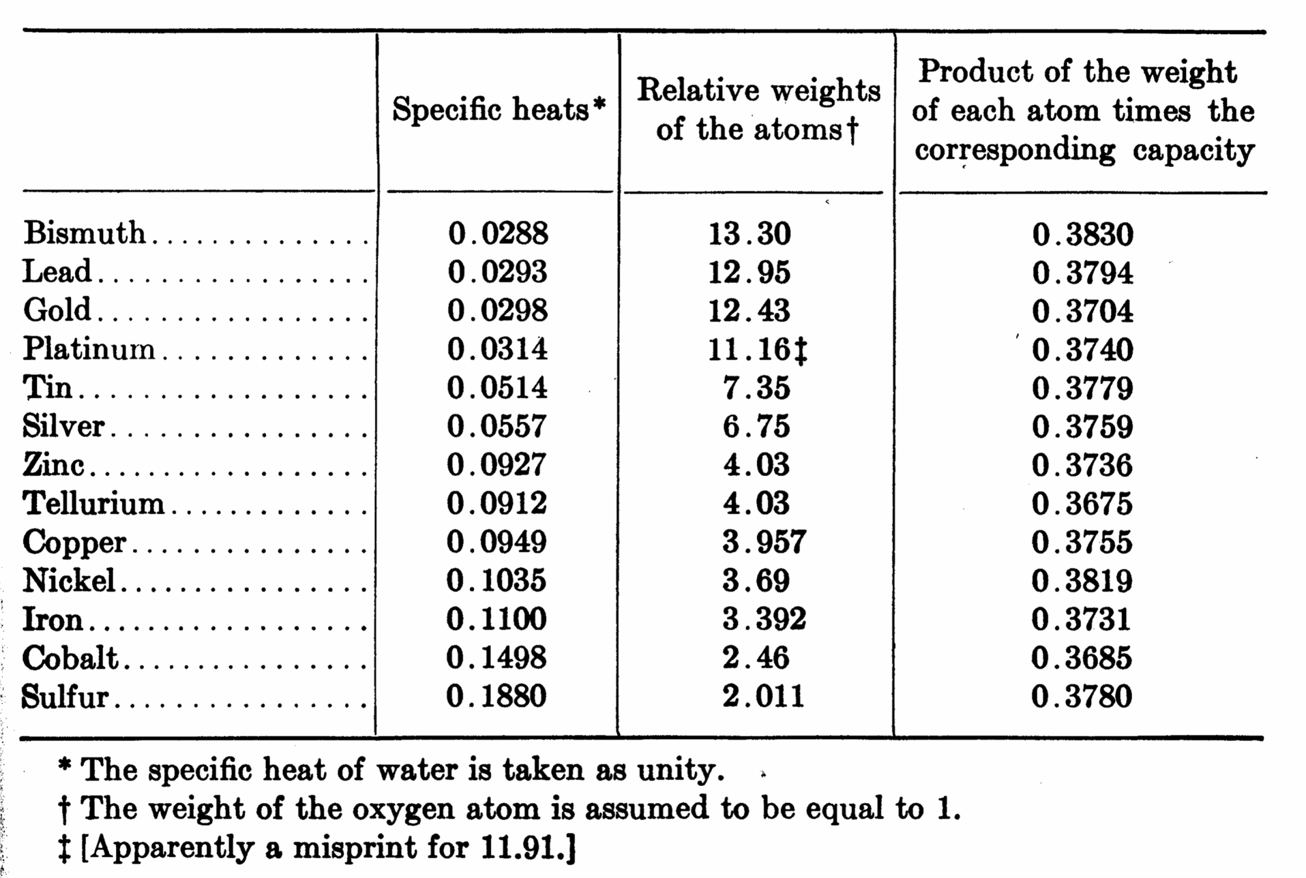 Encuentran que el producto del peso atómico y el calor específico es una constante.