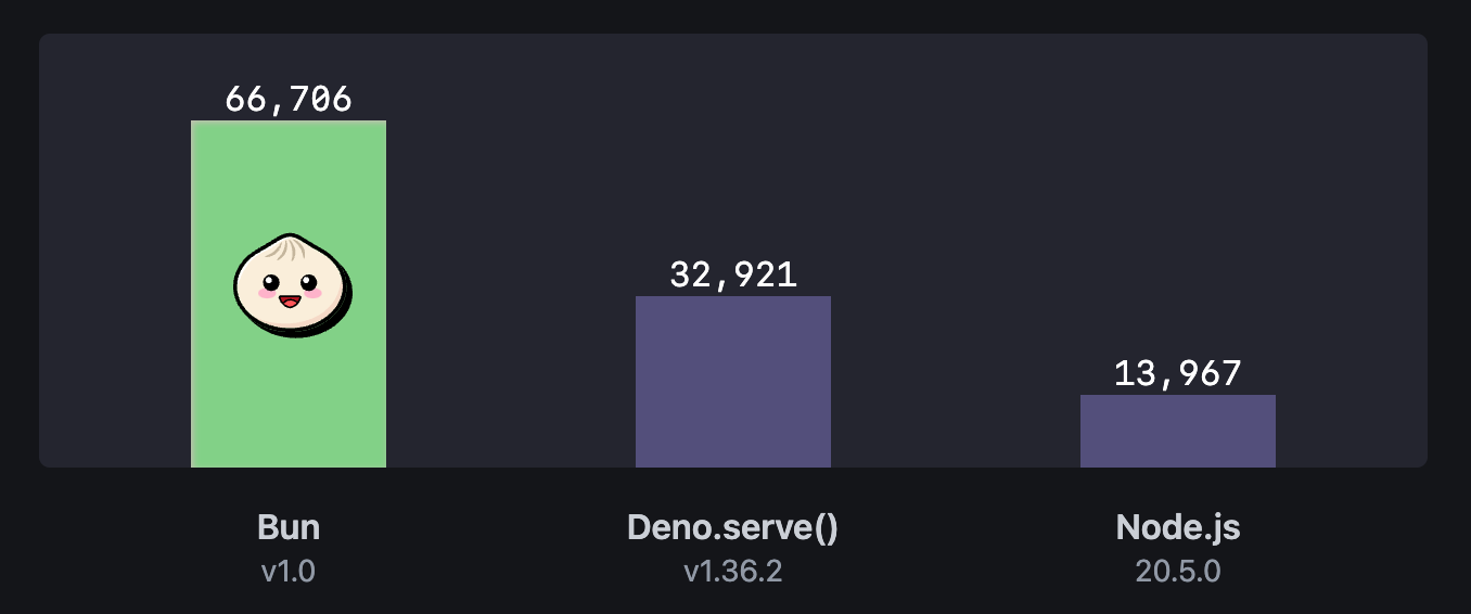 Bun implements standard Web APIs likefetch,WebSocket, andReadableStream. Leveraging JavaScriptCore engine, developed by Apple for Safari, so some APIs likeHeadersandURLdirectly use Safari's implementation.