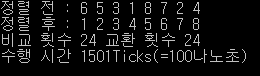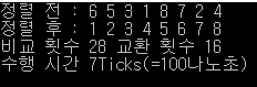 Console.WriteLine($"\n비교 횟수 {compareNumber} 교환 횟수 {exchangeNumber}");