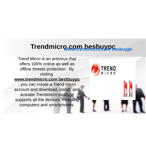 Trend Micro is one of the largest providers of internet and antivirus security in the world with over 250 million users. The company’s antivirus protects you from malware, email scams, and even ransomware, which is become more dangerous every day. <a href="https://www.trendmicro.com-besbuypc.com/trendmicro-bestbuypc">www.trendmicro.com/bestbuypc</a> |<a href="https://www.trendmicro.com-besbuypc.com/trend-micro-geek-squad">Trend Micro Geek Squad</a> | <a href="https://www.trendmicro.com-besbuypc.com">www.trendmicro/bestbuypc</a>