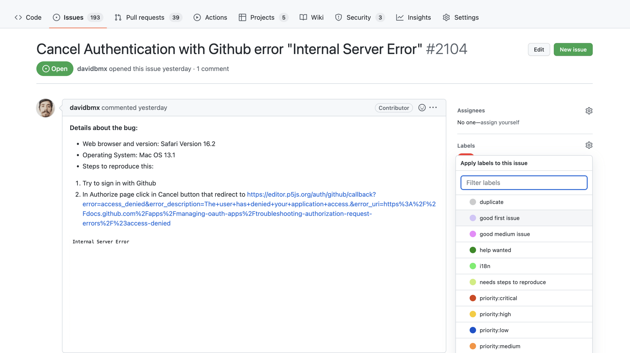 An important label to add is a "Good First Issue", which indicates issues that newcomers could easily work on.