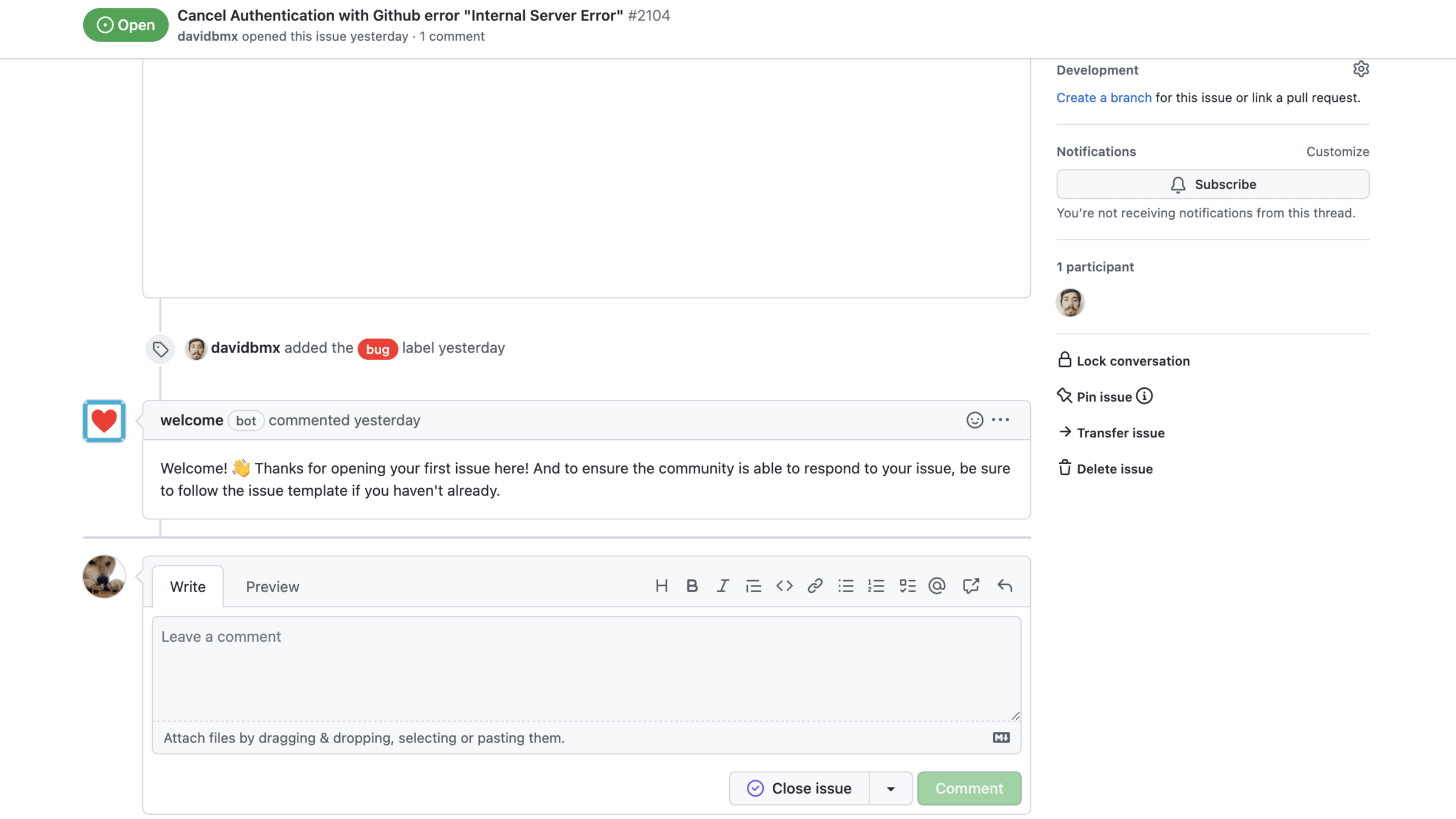- Creating an Issue
