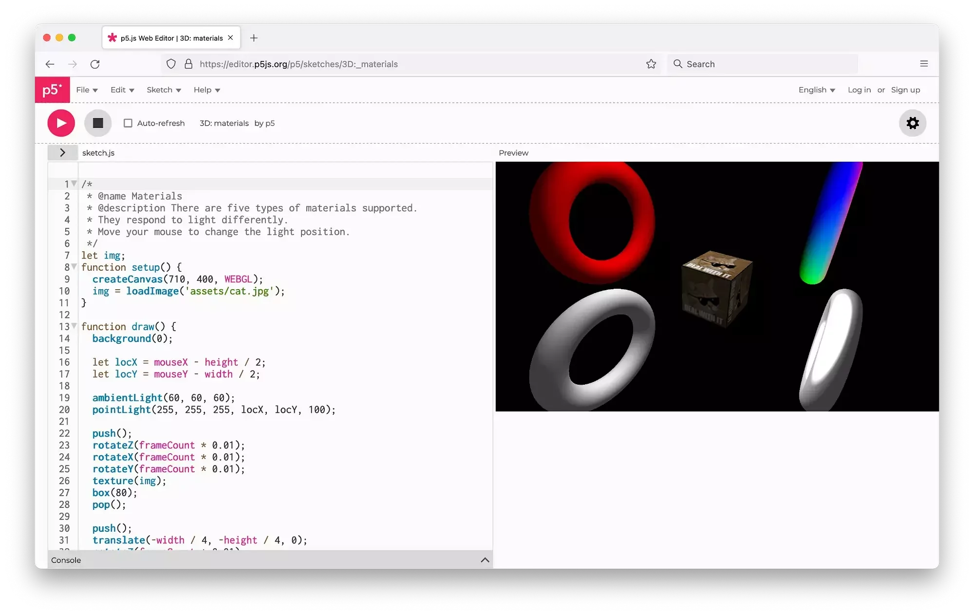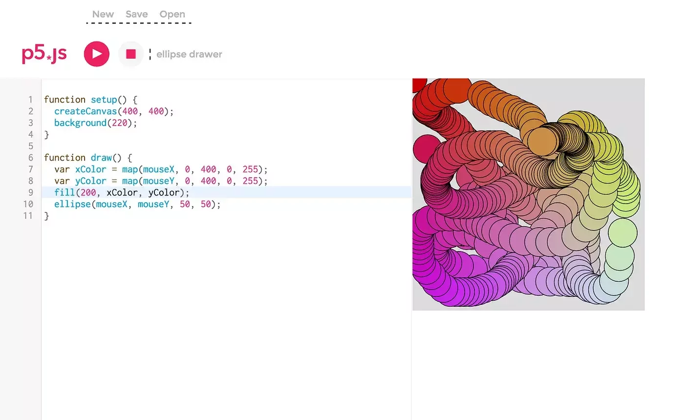 p5.js Editor is a website for creating p5.js sketches, with a focus on making coding accessible and inclusive for artists, designers, educators, beginners, any anyone else!
