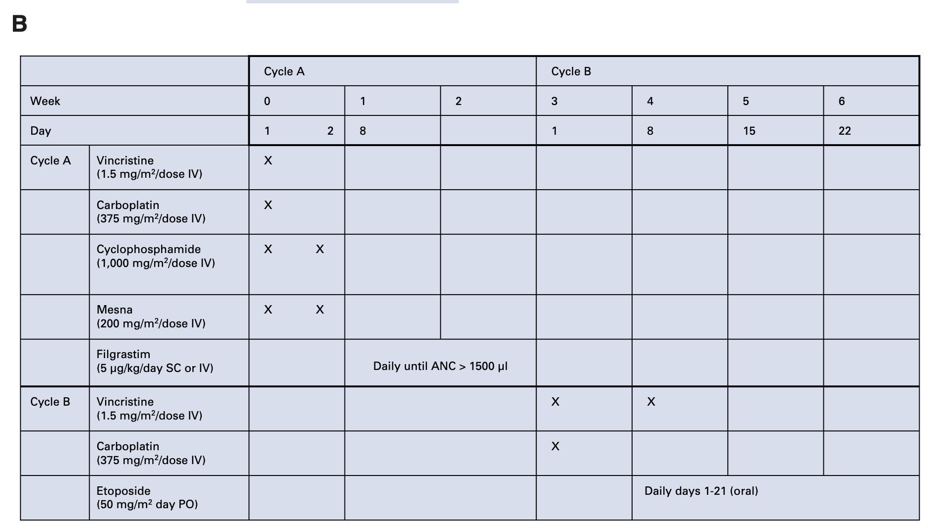 - Etoposide (50 mg/m² oral daily × 21 days)