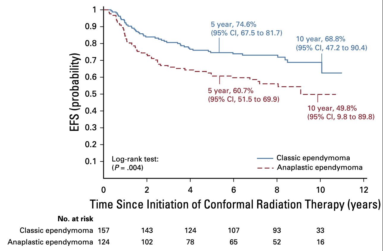 - Tumor histology matters: Classic ependymoma had significantly better outcomes than anaplastic ependymoma