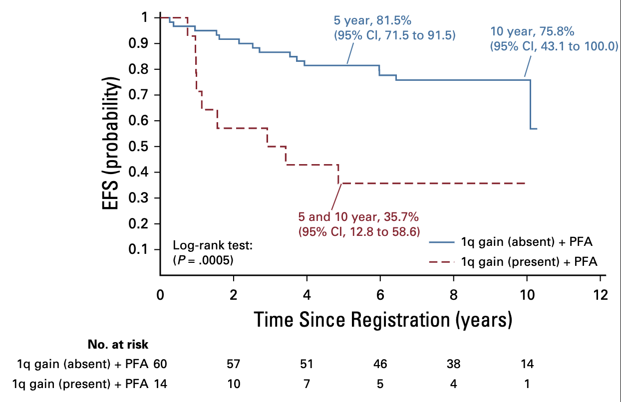 - PFA with 1q gain: 5-year EFS 35.7%