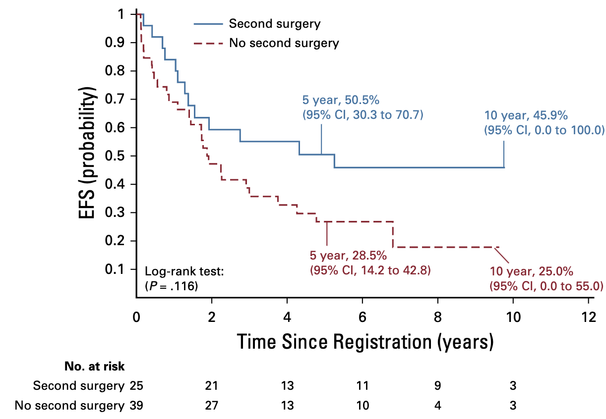- 5-year EFS with second surgery: 50.5%
