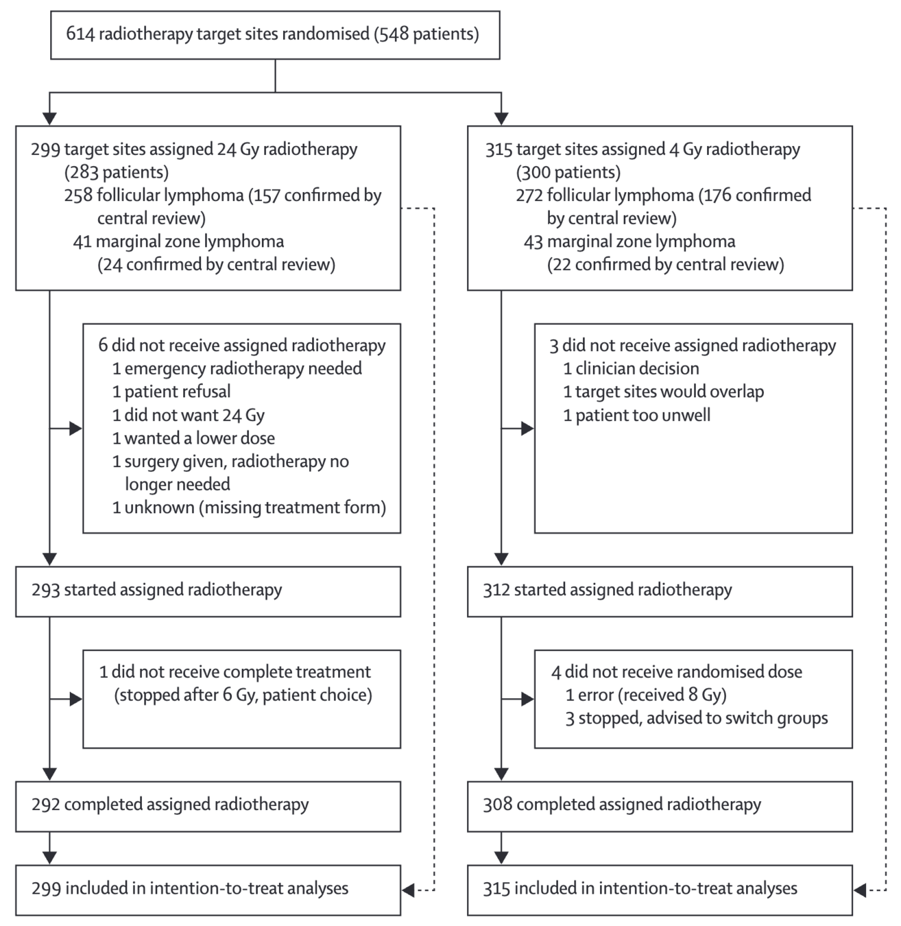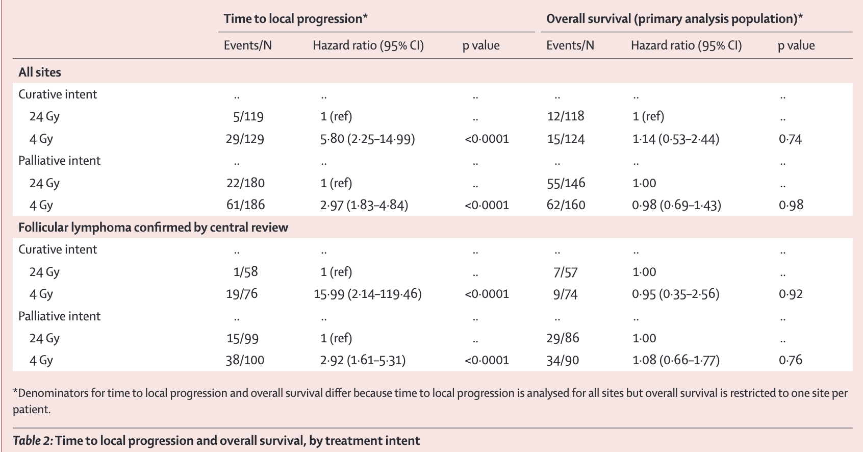 How do these findings compare to other studies on low-dose radiotherapy in indolent lymphomas?