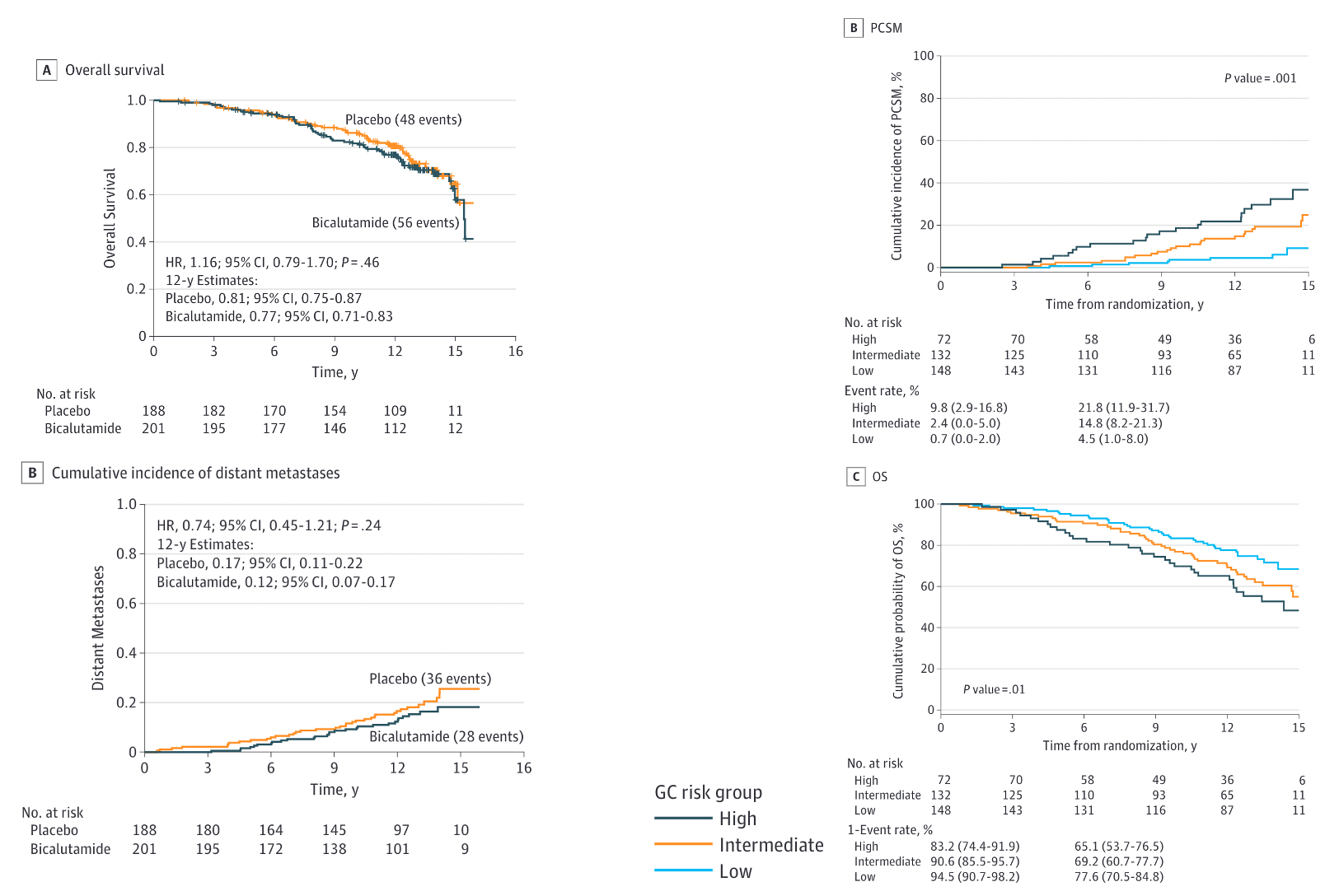 IMPROVED (p<0.0001): 5-yr FFP: 71% vs 81% vs 87% 5-yr DM: 9% vs 6% vs 5% 5-yr castrate resistance: 3% vs 2% vs 1% |