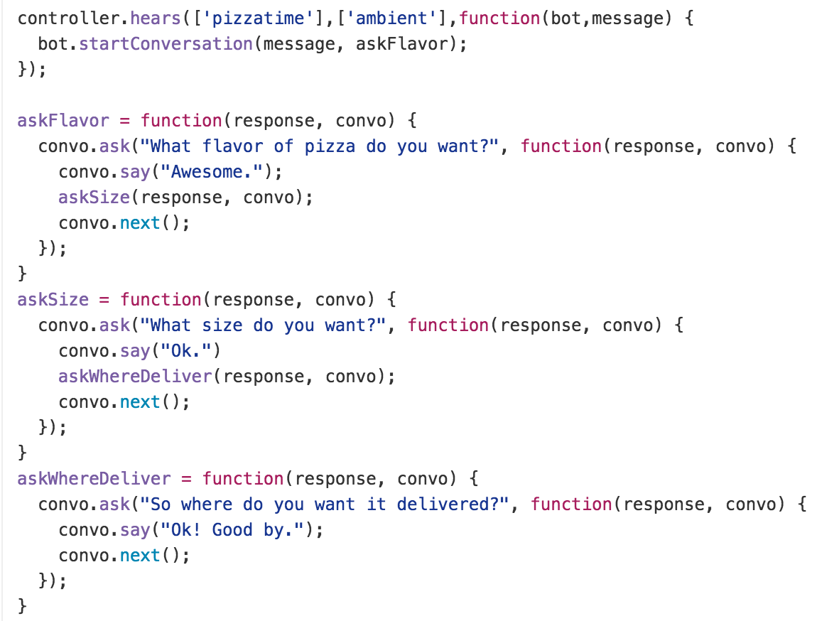 Intelligence: Based on keywords or patterns. and sending messages through both real-time and http APIs. Includes Conversation support (multi-message).