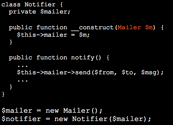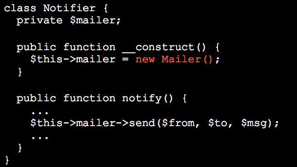 Examples: {Logger, Mailer, Url Generator, Cache backend}