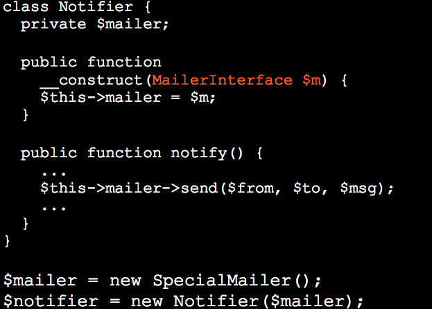 ALL OUR NOTIFIER CLASS NEEDS TO KNOW IS IT NEEDS SOMETHING ON WHICH IT HAS TO CALL THE SEND METHOD.