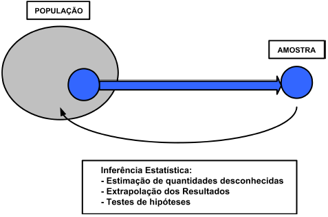 Inferência: fazer afirmações sobre características de uma população, baseando-se em resultados de uma amostra