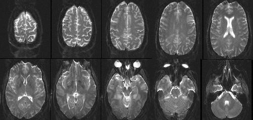 When you put the brain in a magnetic field, these spins tend to align with it.