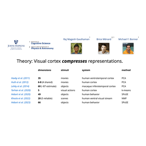A lot of converging evidence that visual representations are low-dimensional across stimuli, species, and methods