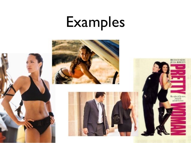 Male Gaze Objectifies women. The female is presented in a way that a heterosexual male would want to see