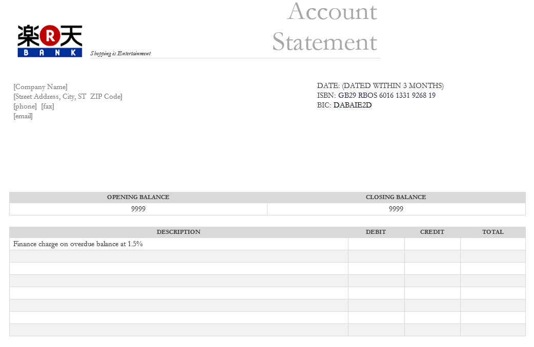 Bank Statement - A business bank statement from your main business bank account. This should be a download PDF version of your online account where possible (valid within 3 months)