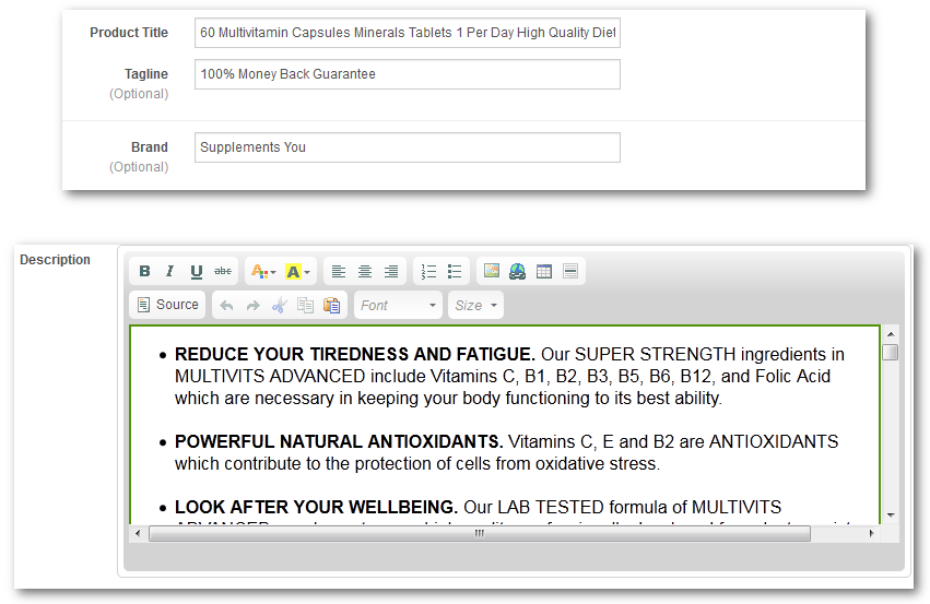 Our search is based on plaintext so it's good practice to include lots of plain text details and product keywords in a readable format (Warning: Spamming of key words is not allowed)