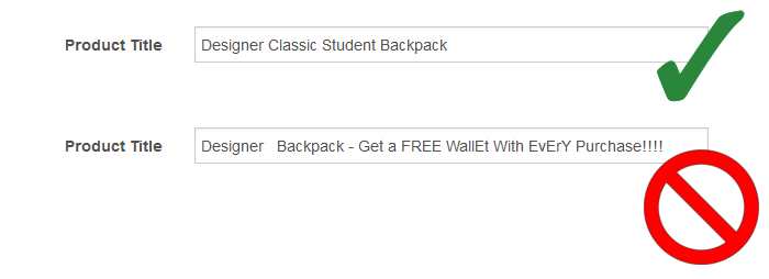 - Try to avoid the overuse of punctutation. ('!!!/???' could lead to exclusion from Google Feeds)