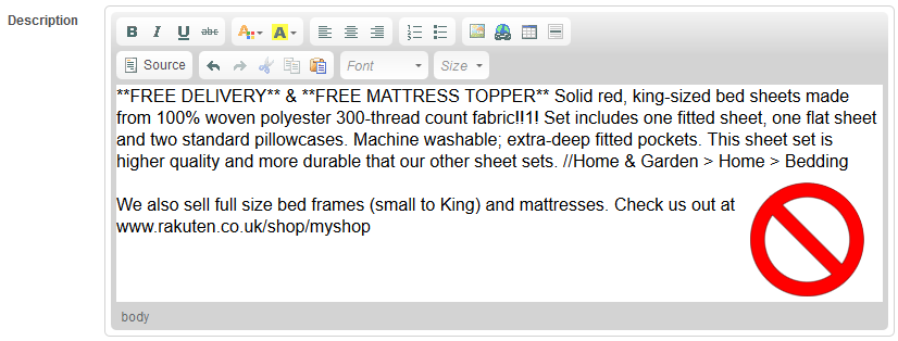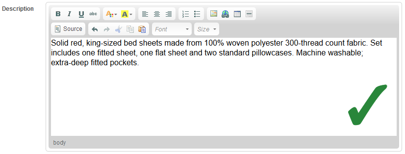 - only include information relevant to the item you are selling and try to describe the most relevant attributes, such as size, material, age range, specials features or technical specs