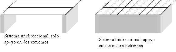 Consiste en una estructura plana conformada por la unión varios elementos (cáscara, viga, cercha) de tal manera que soporte cargas perpendiculares a su plano. Se clasifican por la forma en que transmiten la carga a los apoyos en bidireccionales y unidireccionales