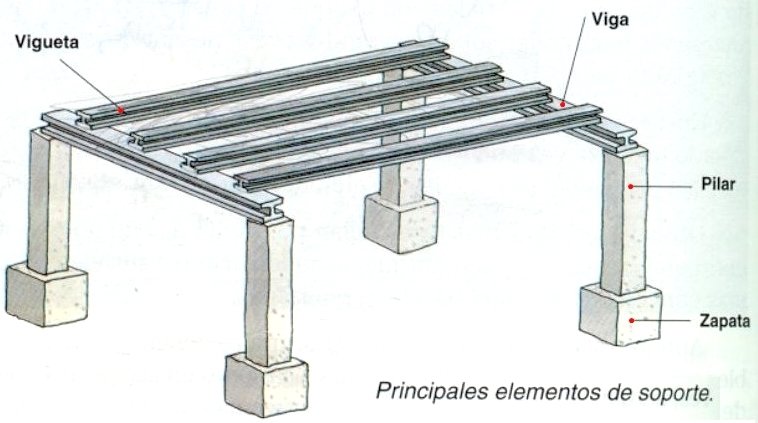 Parte del conjunto que sostiene o soporta, que distribuye o reparte cargas, es decir, que hace al equilibrio estático de la construcción.