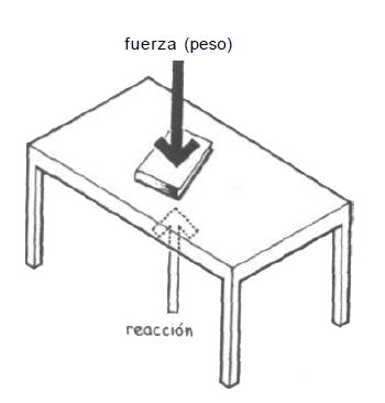 El principio establece que en todo objeto se ejerce una fuerza por su propio peso al colocar dicho objeto sobre un soporte éste responde creando una fuerza de reacción necesaria para contrarrestar la fuerza del peso del objeto, generada por la propiedad elástica del soporte que al comprimirse responde como un resorte, creando una reacción de la misma magnitud en mismo sentido, pero dirección opuesta.