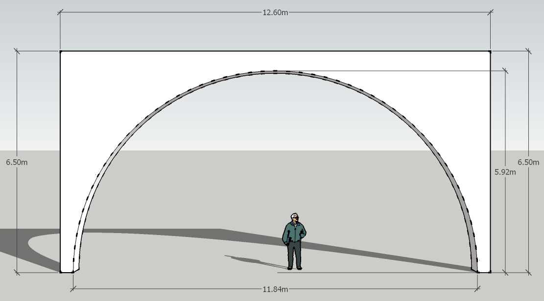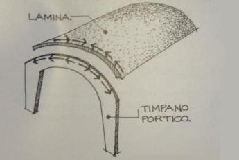 Para dar firmeza a la estructura se utilizará un tímpano rígido del tipo "Tímpano superior" en la directriz de cada cáscara. Estos absorberán la carga mediante acción cortante