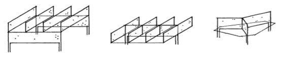 Son sistemas estructurales de elementos lineales rígidos y sólidos -incluyendo su forma compacta de losa, en los que la transmisión de cargas se efectúa por movilización de fuerzas seccionales.