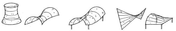 Son sistemas de superficies flexible que, a pesar de no resistir flexiones, resisten esfuerzos cortantes, de tracción y compresión, en los que la redirección de las fuerzas se efectúan mediante la resistencia de la superficie y una forma adecuada de la superficie.