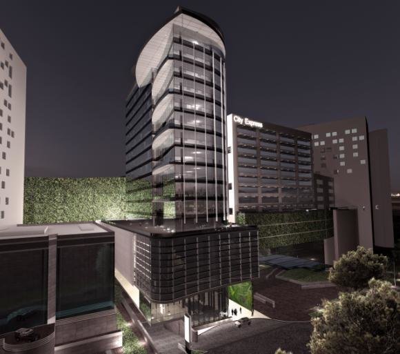 Consta de una torre de 14 niveles para oficinas, un Mezzanine para oficinas privadas o comercios de atención al público, un Lobby principal, un nivel de acceso al Lobby principal, 7.5 niveles para estacionamiento subterráneo y helipuerto en azotea.