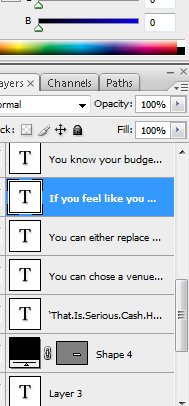 These are the layers from which I edited the text and placed everything in order. I used the opacity tool to lighten the colours.