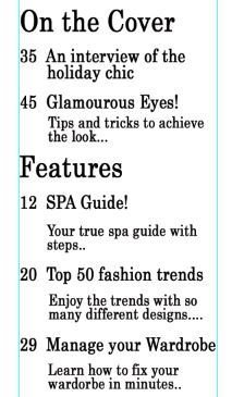 Then I added the Content on the left side of my content page. I wrote it vertically because its a fashion magazine and such little things will attract my audience.