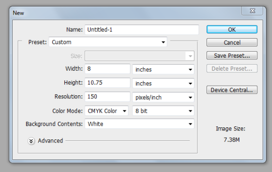 This is the magazine size I chose. The width is 8 and the height is 10.75. The colour resolution is 150. The resolution is basically the pixels. So if I decrease my resolution my picture will turn out to be blurry. I did not increase the colour resolution because I was working for the web. If you have to print something then the resolution goes up to 300.