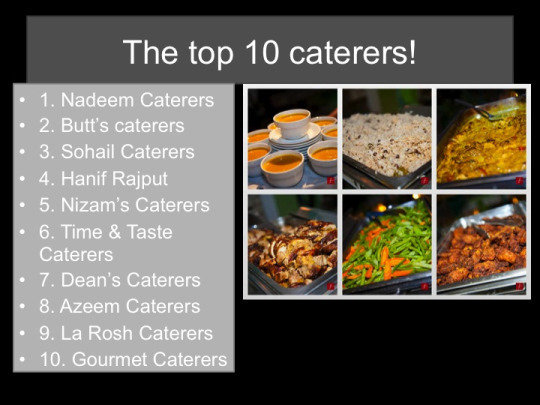 Extensive genre research-The top 10 caterers and Current Trends.