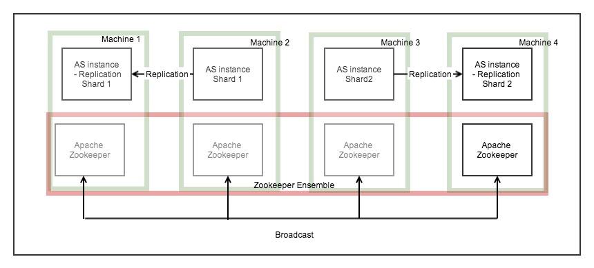 DAS uses ZooKeeper as a system of record for the cluster state, for central config, and for leader election. [Junqueira, 2013]
