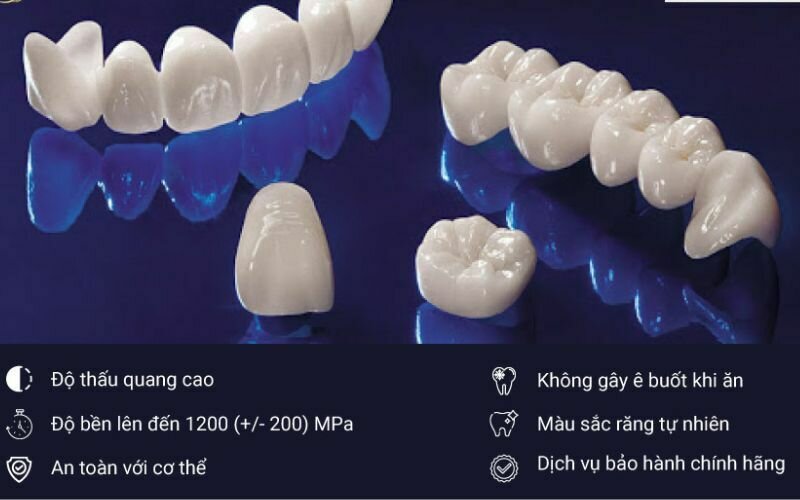 Đặc biệt, sản phẩm còn được nung nấu ở nhiệt độ trên 1600 độ C nên có độ bền lớn, khả năng chịu lực cao gấp 5 lần răng thật. Điều này cũng giúp kéo dài tuổi thọ của dòng sứ này lên đến 20 năm hoặc thậm chí là lâu hơn nếu bạn chăm sóc răng miệng đúng cách.