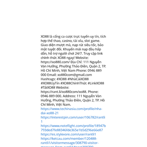 Website: https://rant.li/xo880com/xo88https://rant.li/xo880com/xo88 XO88 là cổng ca cược trực tuyến uy tín, tích hợp thể thao, casino, tài xỉu, slot game. Giao diện mượt mà, nạp rút siêu tốc, bảo mật tuyệt đối. Khuyến mãi nạp đầu hấp dẫn, hỗ trợ người chơi 24/7. Truy cập link c