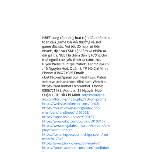 Website: https://rant.li/nbet13com/nbethttps://rant.li/nbet13com/nbet NBET cung cấp hàng loạt trận đấu thể thao toàn cầu, game bài đổi thưởng và slot game đặc sắc. Với tốc độ nạp rút tiền nhanh, dịch vụ CSKH tận tâm và nhiều ưu đãi giá trị, NBET là điểm đến lý tưởng cho mọi ngườ