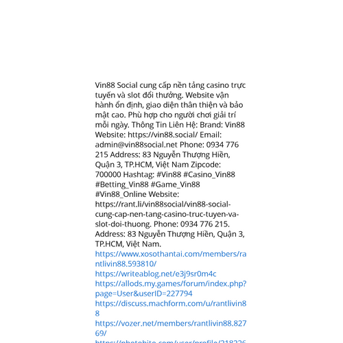 Website: https://rant.li/vin88social/vin88-social-cung-cap-nen-tang-casino-truc-tuyen-va-slot-doi-thuong. Vin88 Social cung cấp nền tảng casino trực tuyến và slot đổi thưởng. Website vận hành ổn định, giao diện thân thiện và bảo mật cao. Phù hợp cho
