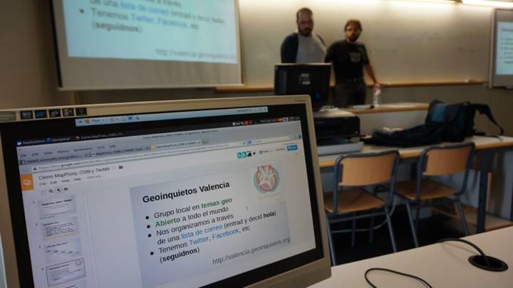 Mapping Party Valencia with Geoinquietos Valencia talking about OSM and POIs for commuters