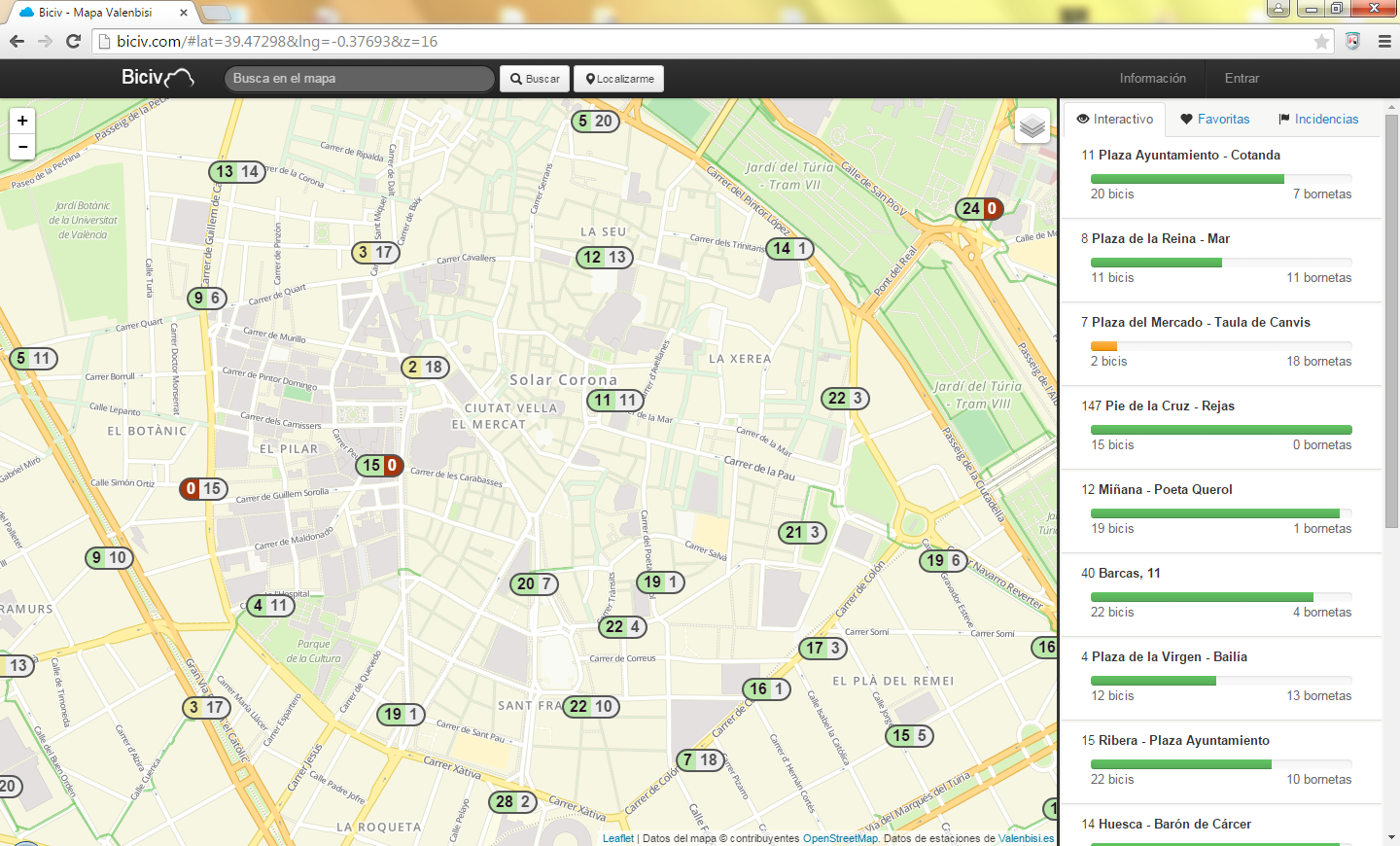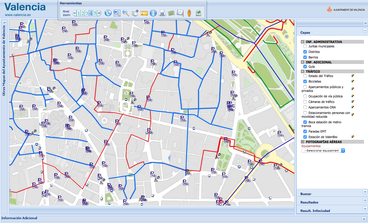 - Sí, muy limitados. Únicamente localizaciones de algunos aparcabicis y las estaciones de Valenbisi