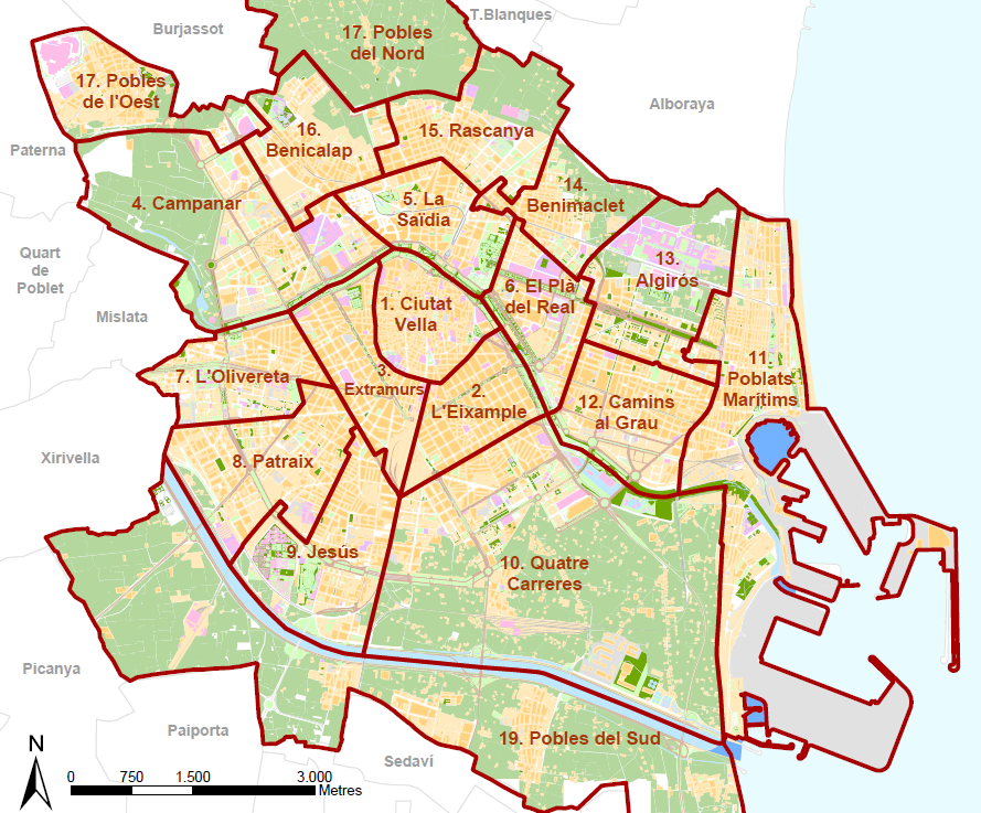 - En el Callejero del Ayto. Únicamente localizaciones de algunos aparcabicis (2014) y las estaciones de Valenbisi