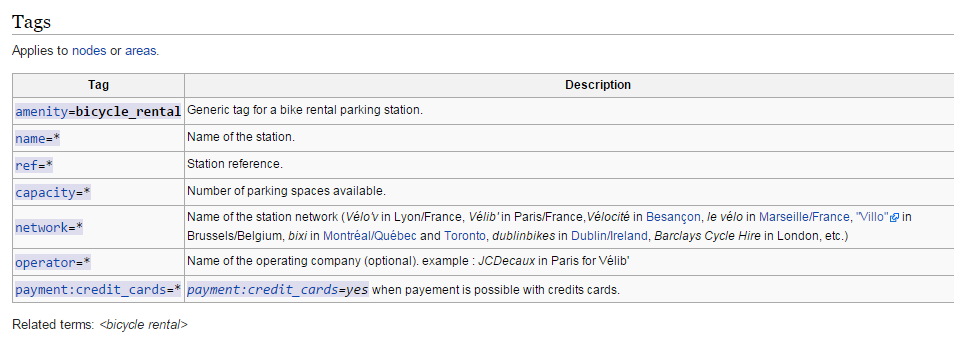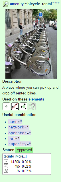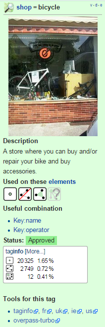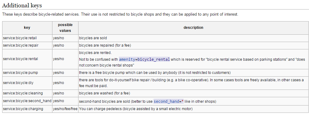 Comentario: Esta etiqueta no se refiere a tiendas de alquiler de bicicletas, que se etiquetan con shop=bicycle y service:bicycle:rental=yes