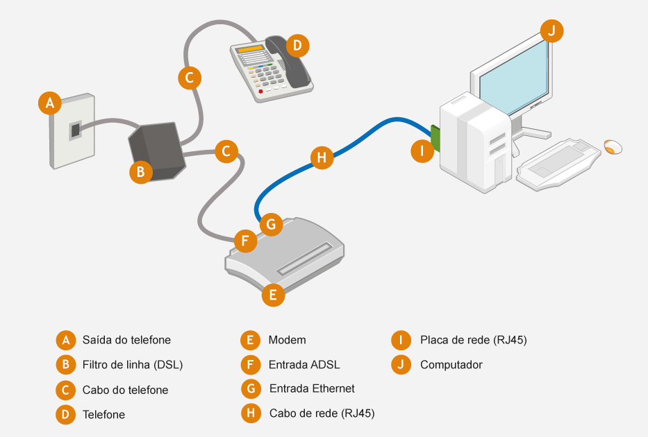 - Use um cabo de rede para conectar o modem da sua operadora ao seu roteador.