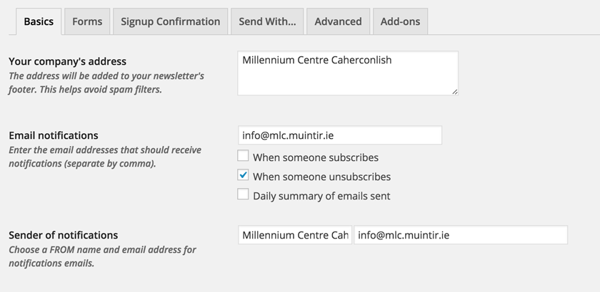 Go through each step, saving details each time and make sure the From name, email address and Subject line are correct.