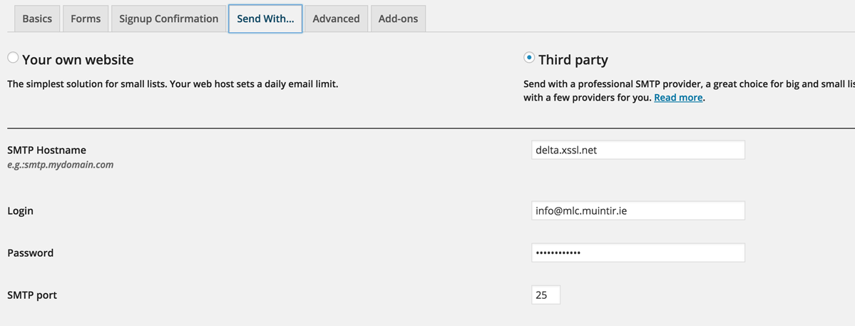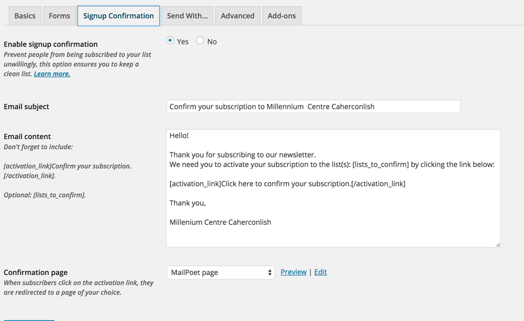 - Select Mailpoet > Settings from the dashboard menu